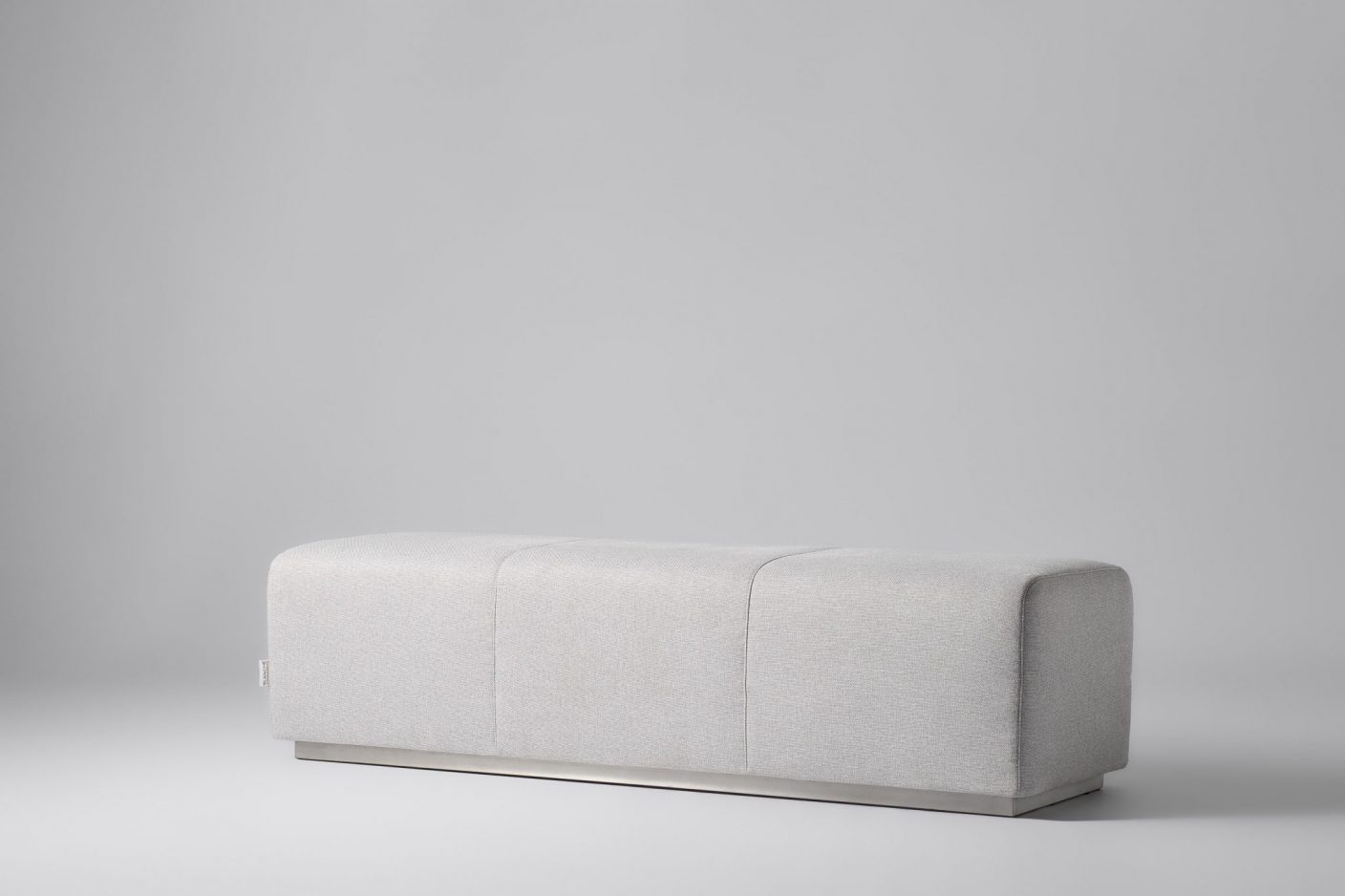 The ETERNA bedroom bench is a refined and practical addition to the ETERNA bed. With its clean silhouette and a wide palette of fabric options, it can be easily customised to suit any interior. The metal base enhances its modern character while ensuring durability. A well-considered finishing touch for a complete and elegant bedroom look.