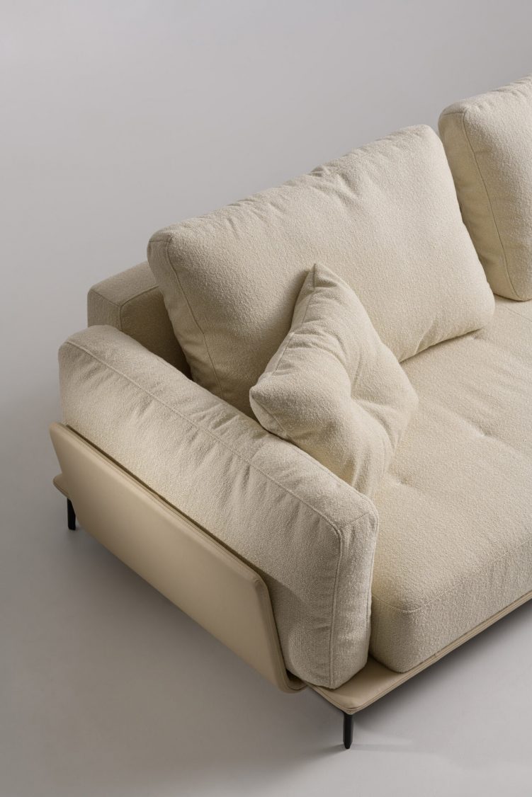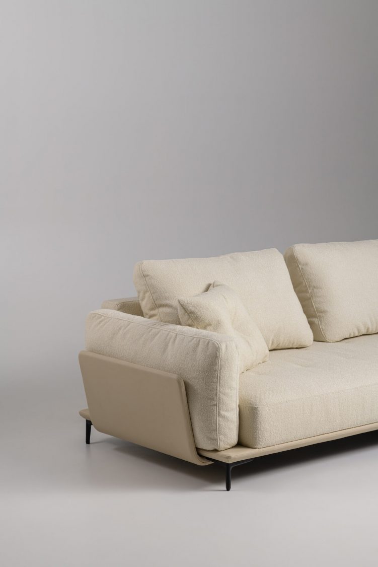 Kanapa NAIVE to nowoczesny system modułowy, stworzony przez projektanta Blanche do wykorzystania w różnych formatach wnętrz. Wyrafinowany design, ozdobne wstawki i wysokie metalowe podpory nadają modelowi wizualną lekkość i elegancję. Konstrukcja pozwala na tworzenie indywidualnych konfiguracji, a opcjonalny wbudowany stolik kawowy zwiększa wygodę codziennego użytkowania. NAIVE to sofa łącząca styl, komfort i funkcjonalność.